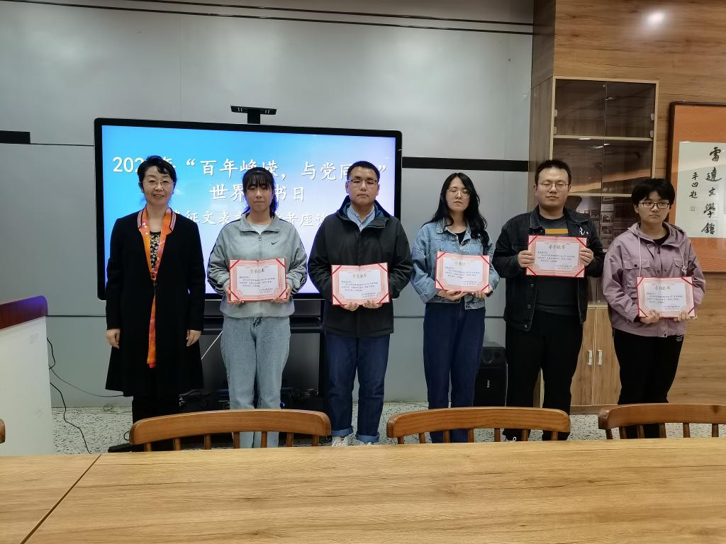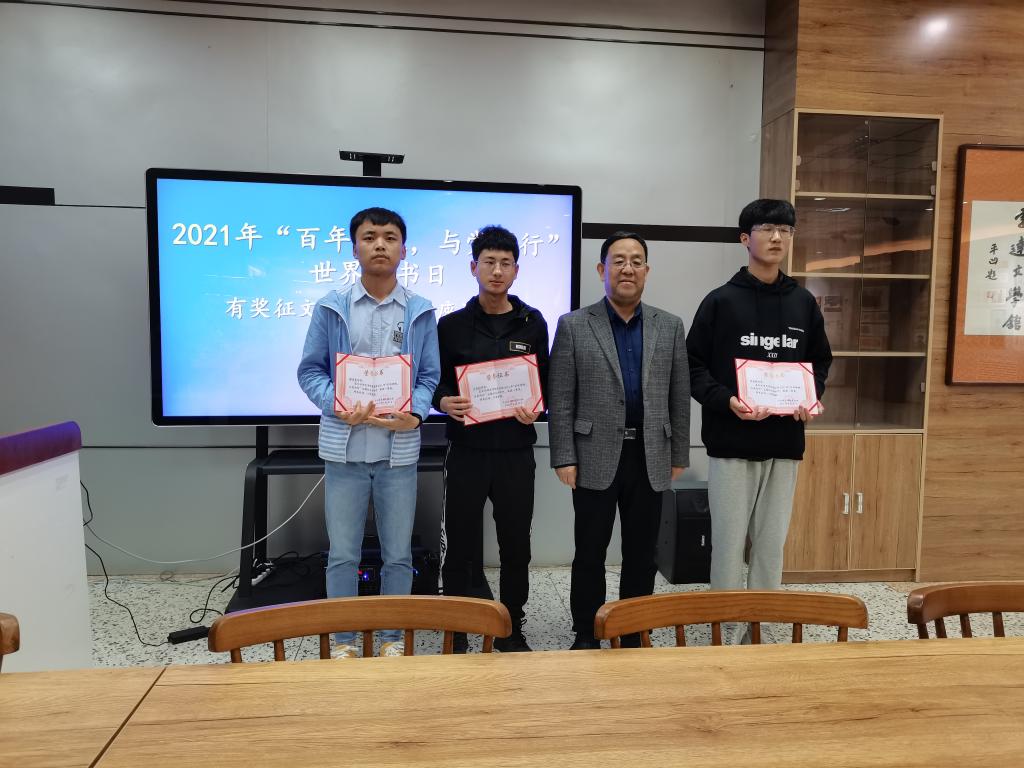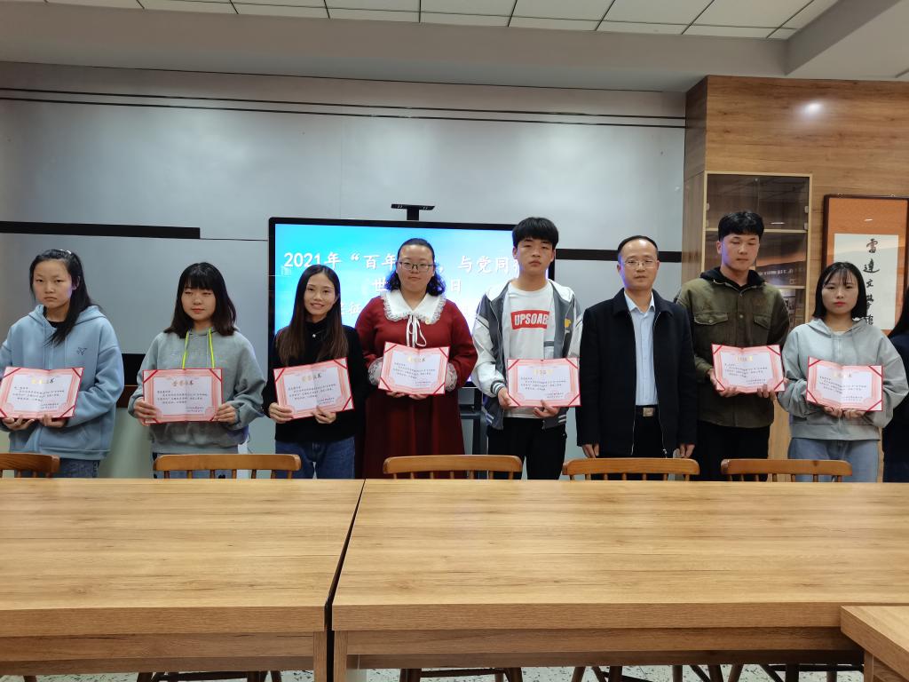 会上对2021年“百年峥嵘,与党同行”世界读书日有奖征文、“超星杯”阅读打卡及新东方在线学习等活动的获奖者进行了表彰。