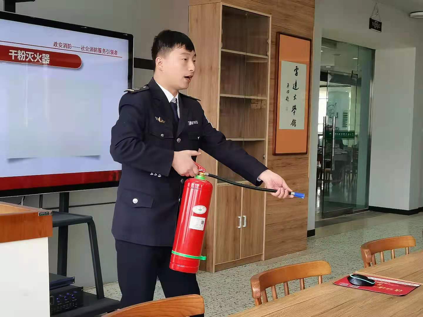 培训现场,消防教官通过火灾视频播放和PPT展示等方式介绍了火灾的危害,并通过案例讲述了消防安全的重要性。同时,从消防典型案例、初期火灾扑救、自救逃生及灭火器和消防设施使用等方面做了较为系统的讲解与操作师范,最后介绍了火场中自救、逃生的方法以及灭火器的种类、操作使用方法等一系列防火安全知识。