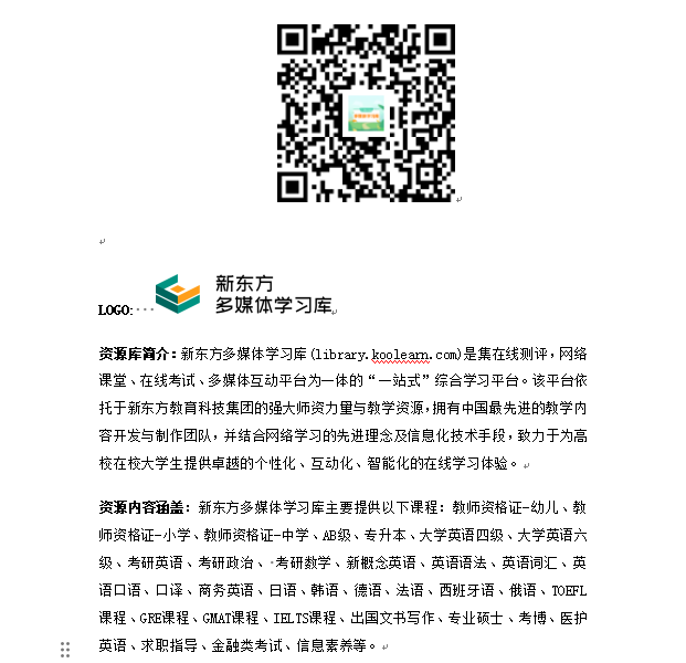 新东方多媒体学习库 新东方多媒体学习库产品H5版简介,扫下方二维码观看